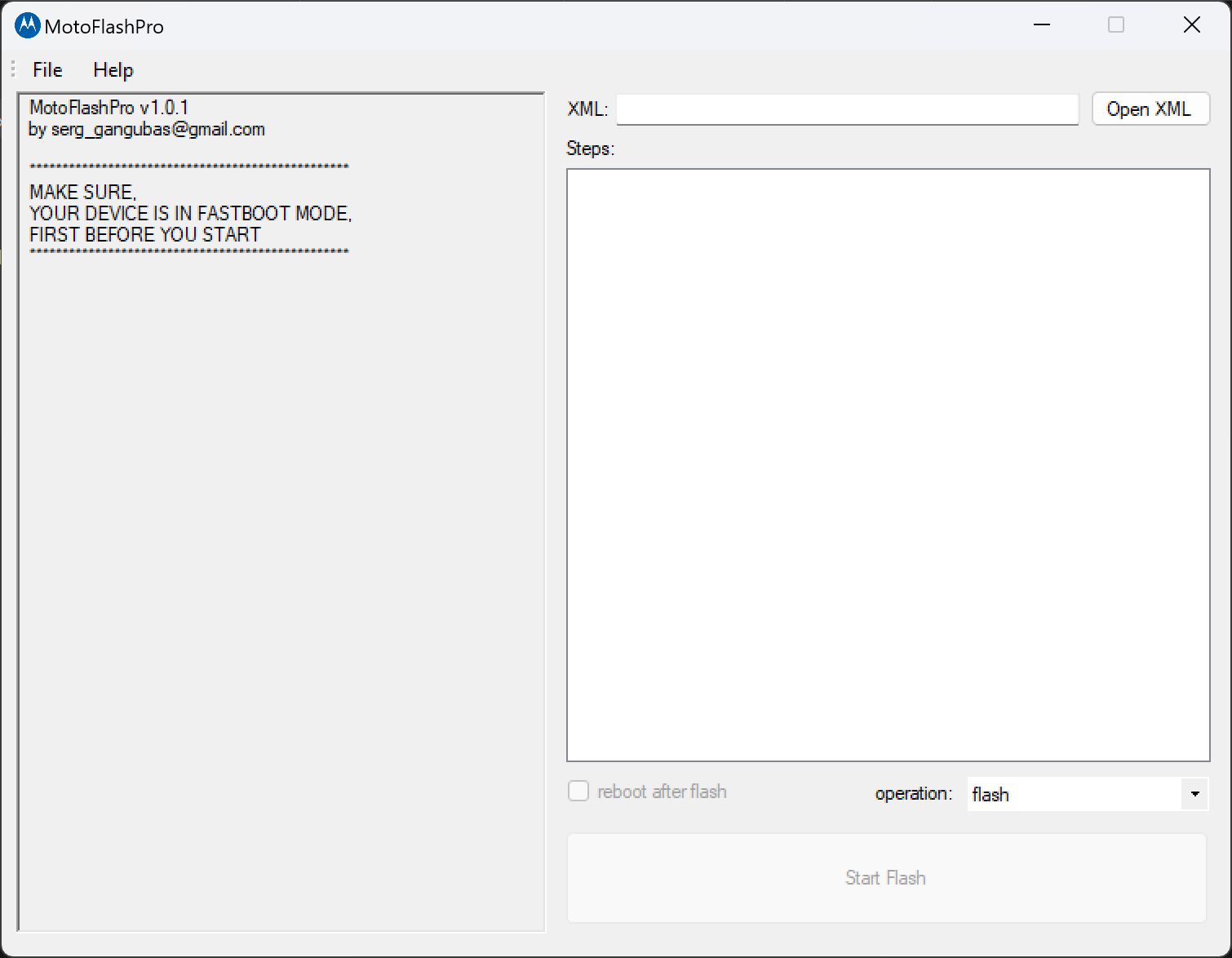C:\MotoFlashProV3и запускаемMotoFlashPro.exe.