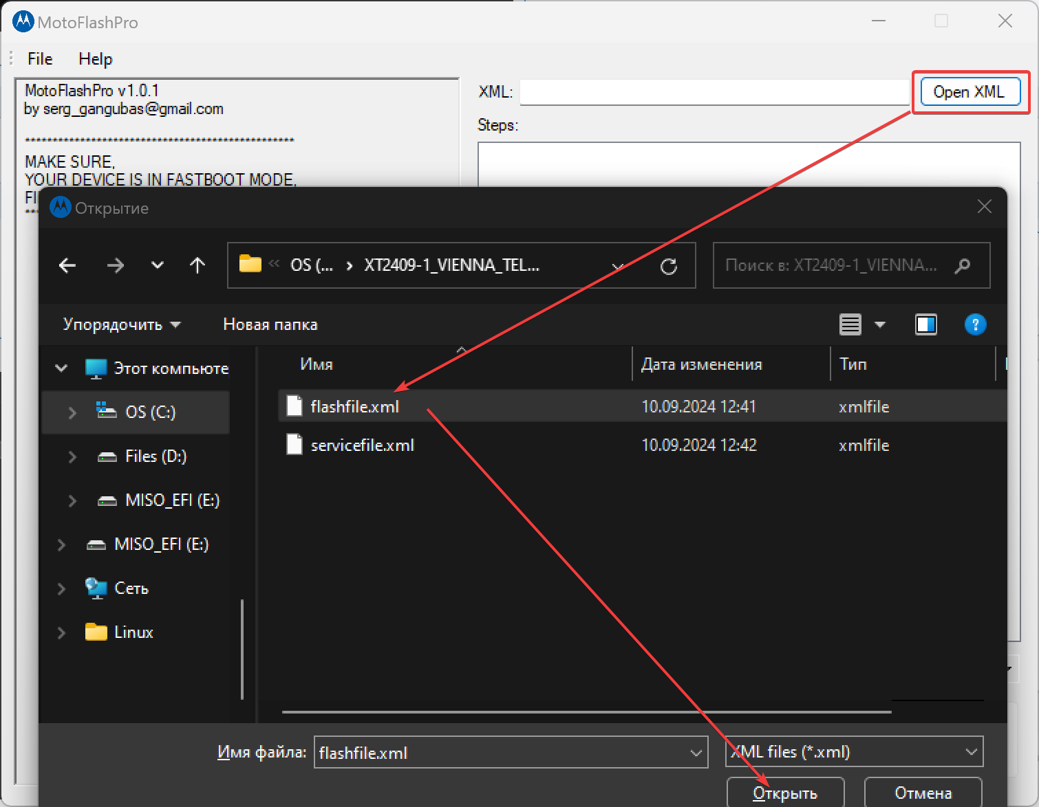Open XMLи в распакованной прошивке выбираем файлflashfile.xml.