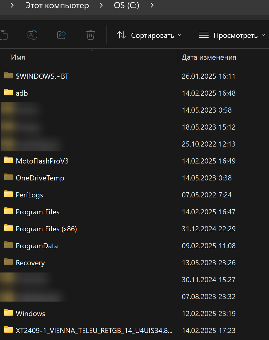 - Архивы с adb/fastboot, прошивальщиком MotoFlashProV3 и прошивкой распаковываем в архив диска C:, должно выглядеть следующим образом.