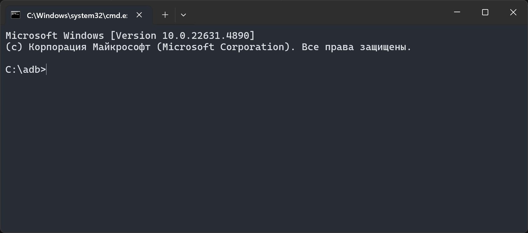 C:\adbи запускаемSTART.exe. Должна открыться командная строка.