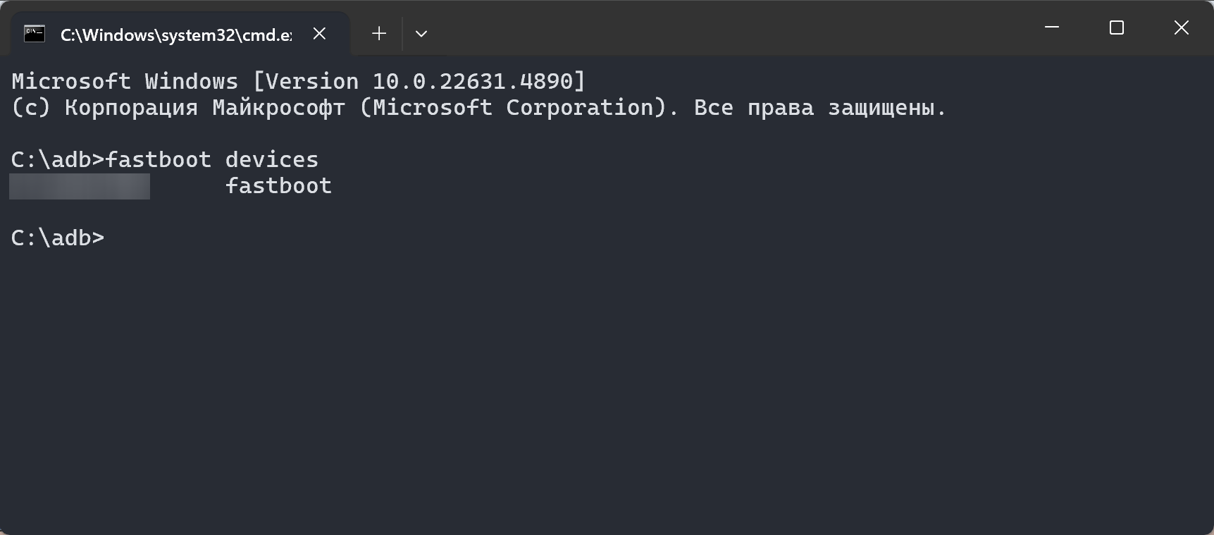 fastboot devicesи в ответе должны увидеть устройство. Если устройства нет, то пробуем подключить другим кабелем или в другой порт ПК/ноутбука.