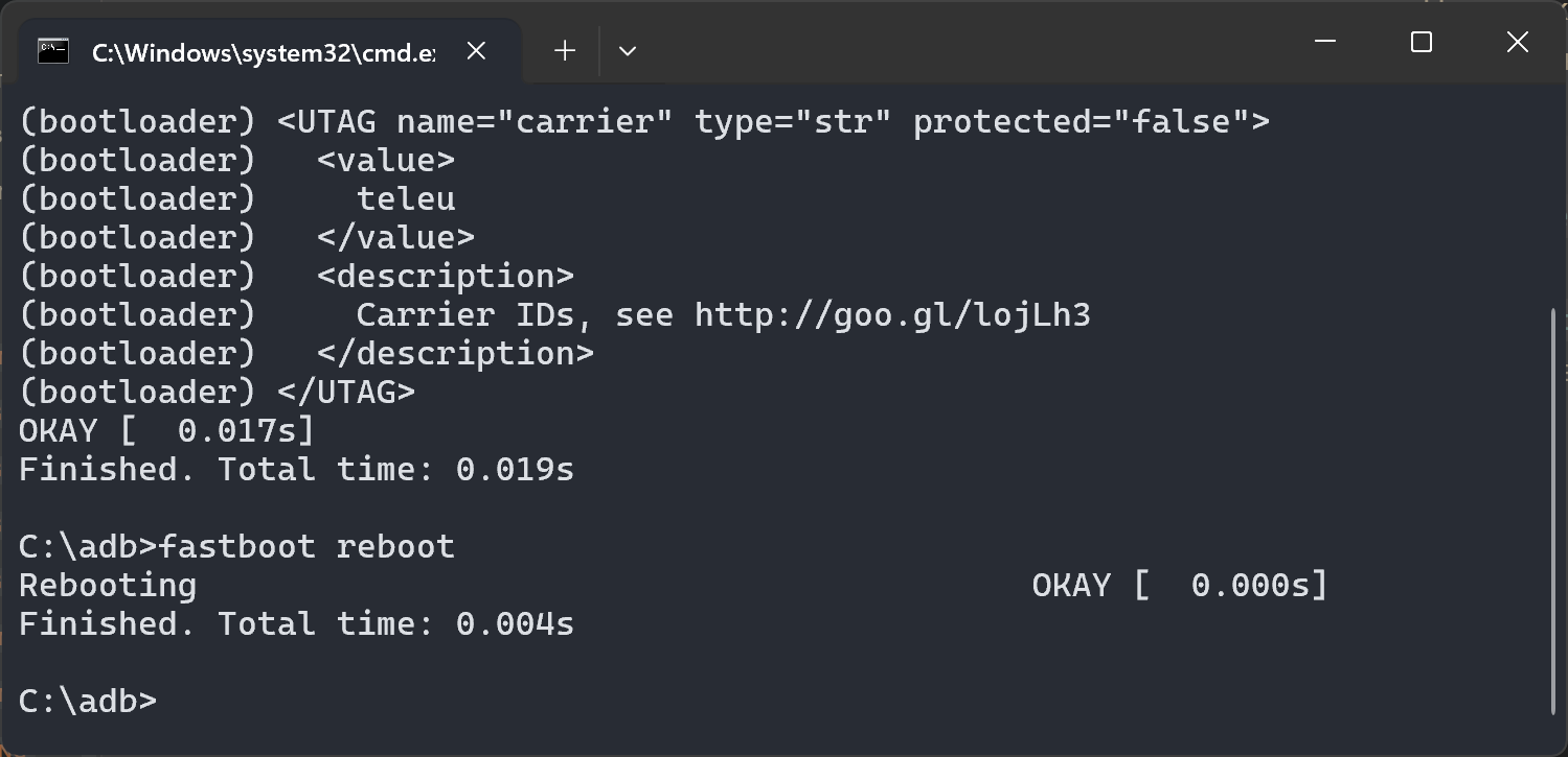 fastboot oem config carrier teleuилиfastboot oem config carrier retgb. В случае использования других прошивок: RETAPAC -fastboot oem config carrier retapac, RETCN -fastboot oem config carrier retcn.
