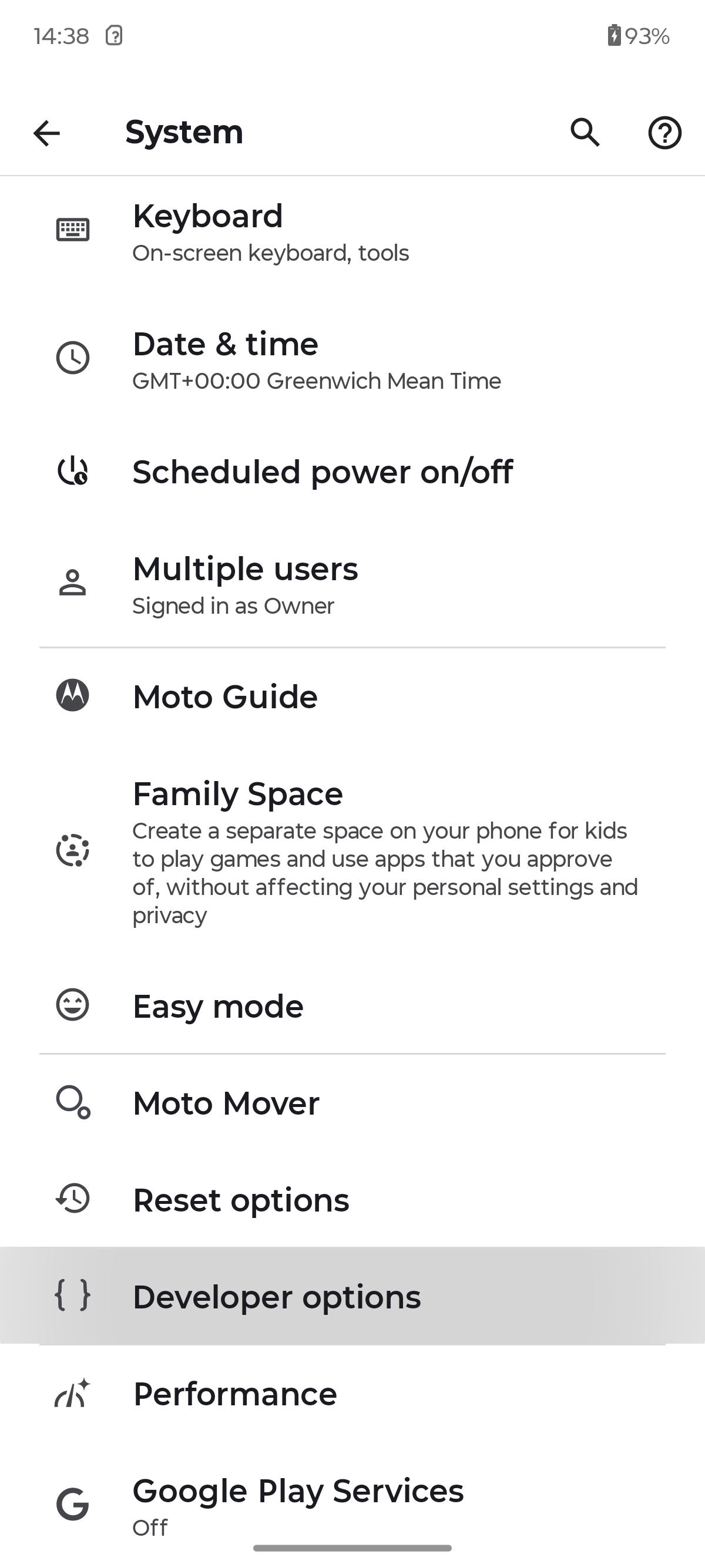 - После активации выходим в главное меню настроек, далее System - Developer Options