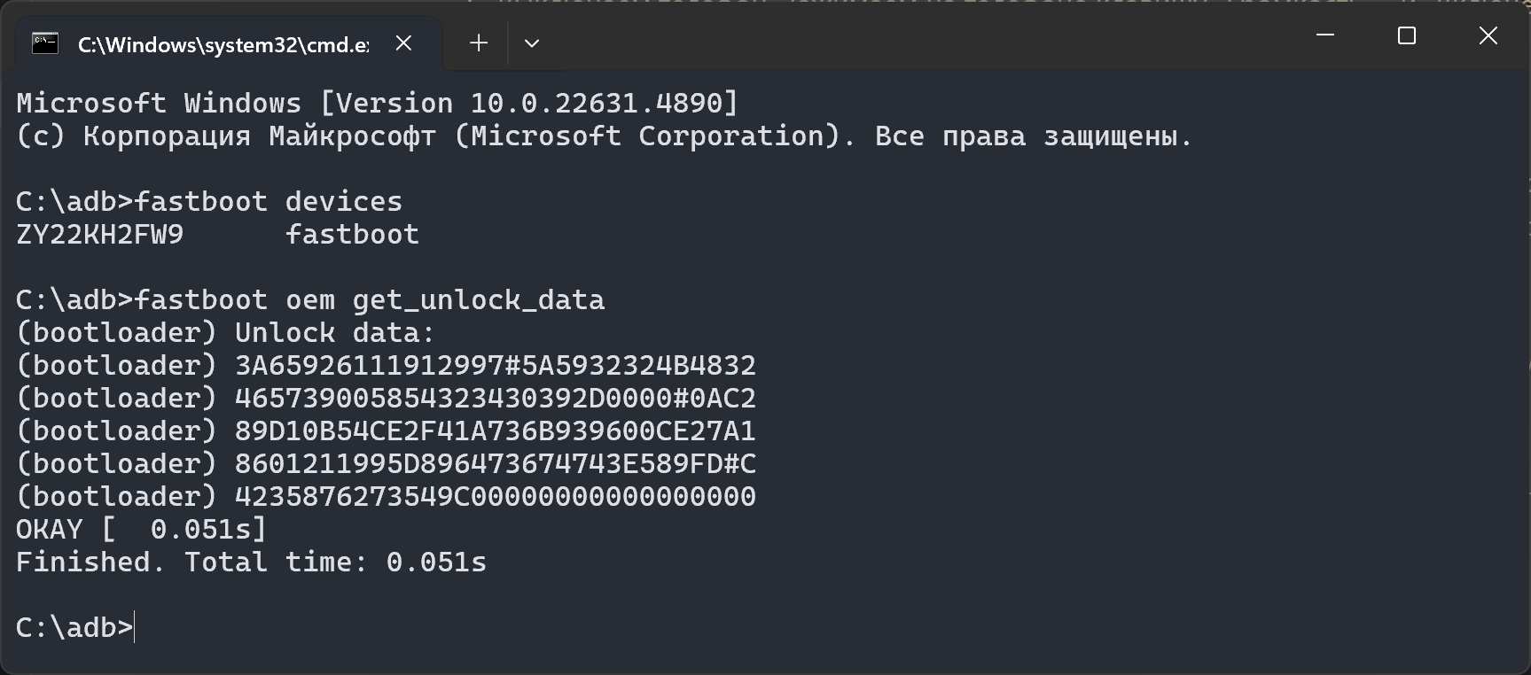 fastboot oem get_unlock_dataи в результате должны получить некий код.