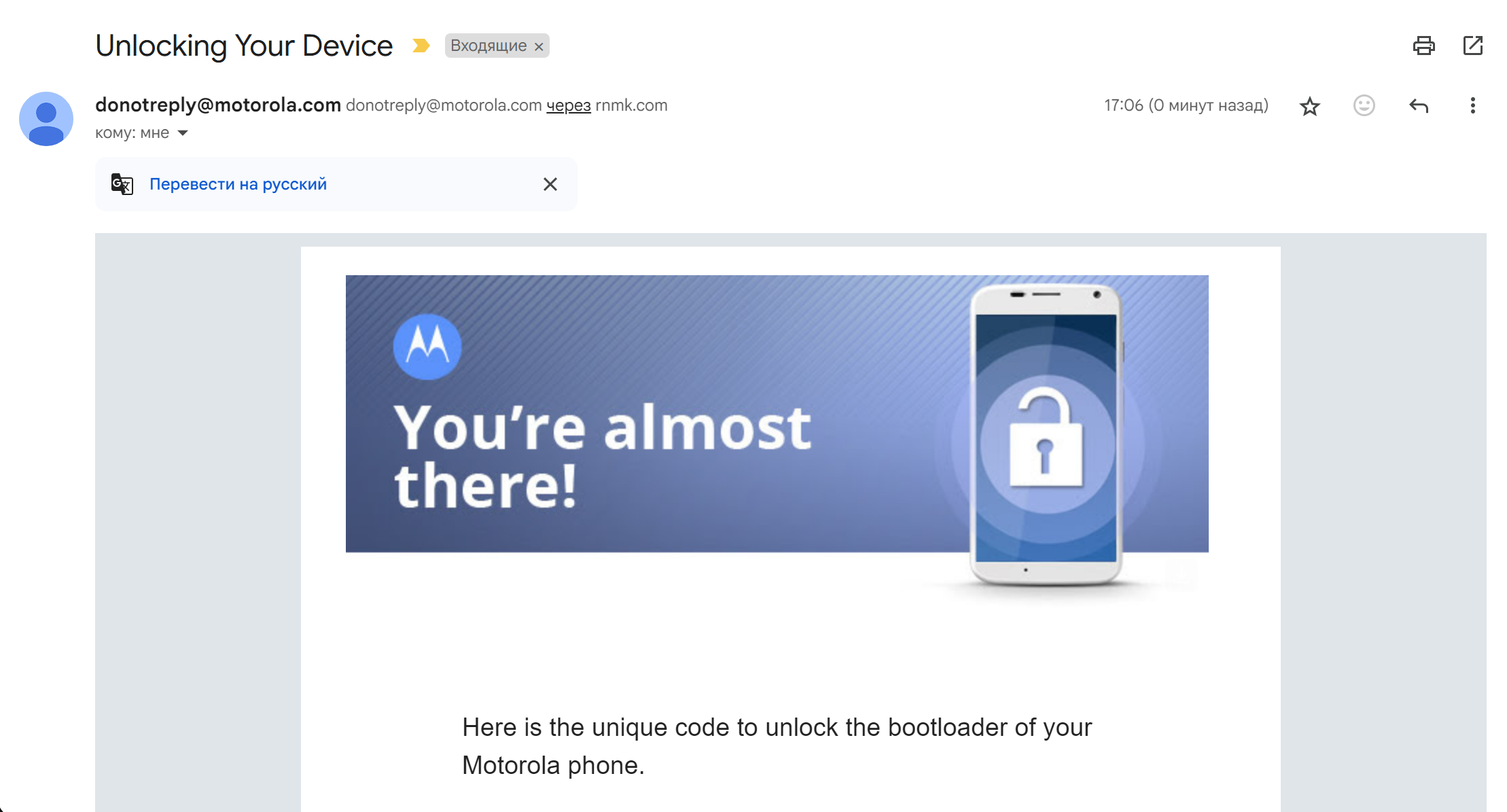 donotreply@motorola.com. Копируем код из сообщения.